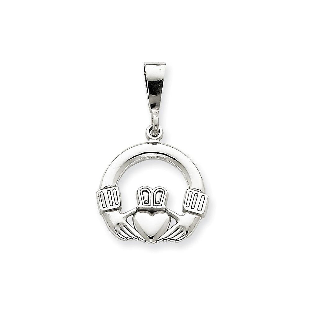 14k White Gold Polished Irish Claddagh Celtic Trinity Knot Charm 22x15mm Pendant Necklace for Women