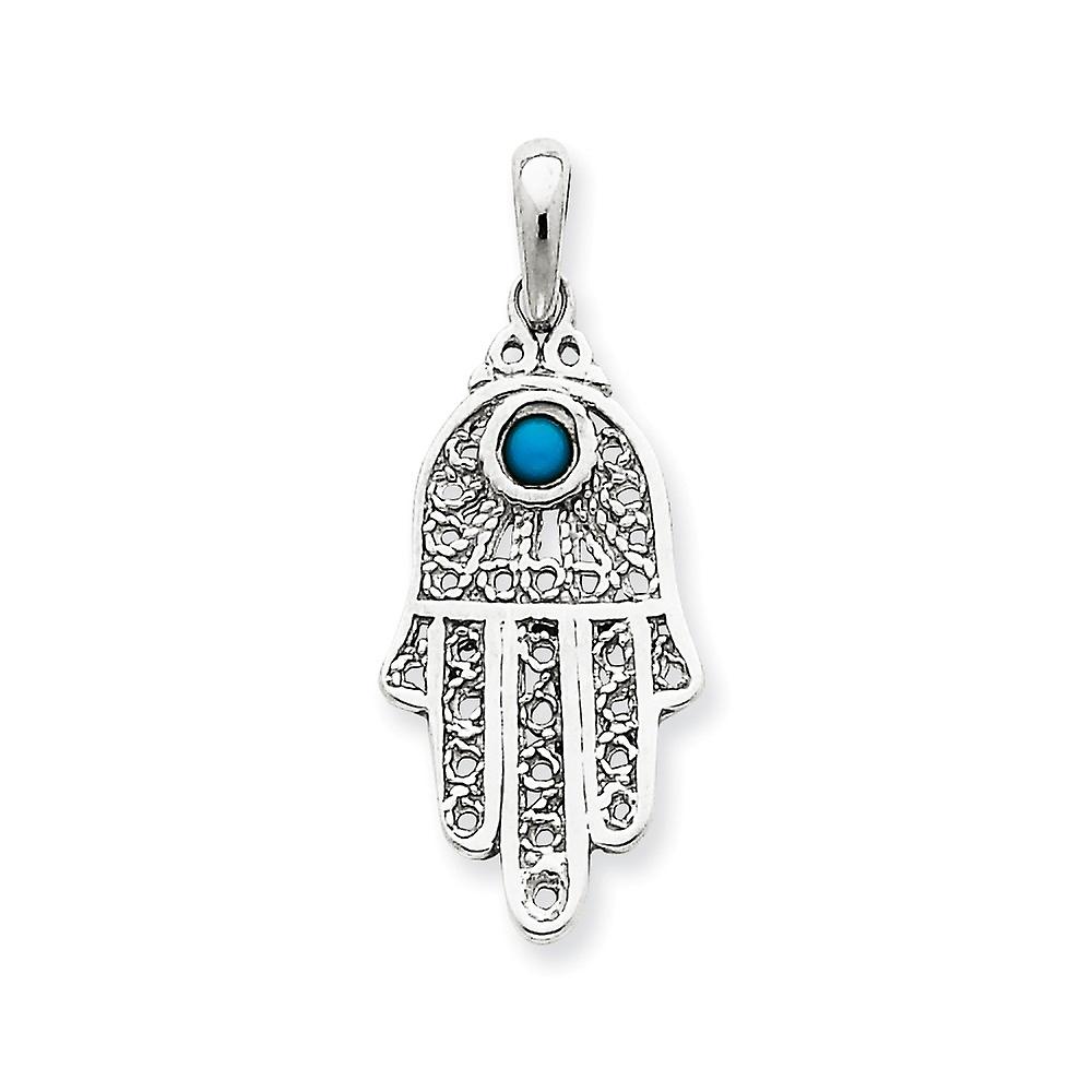 14k White Gold Polished Simulated Turquoise Filigree Chamseh Pendant Necklace 25x14mm-Pendant for Women