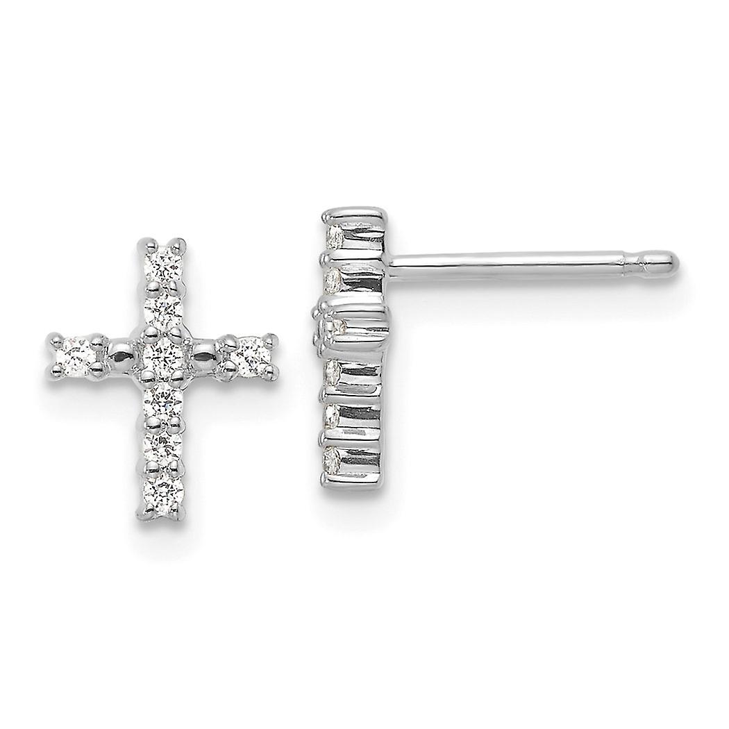14k White Gold Polished Diamond Religious Faith Cross Post Earrings 9.6x7.7mm Wide Stud Earring for Women