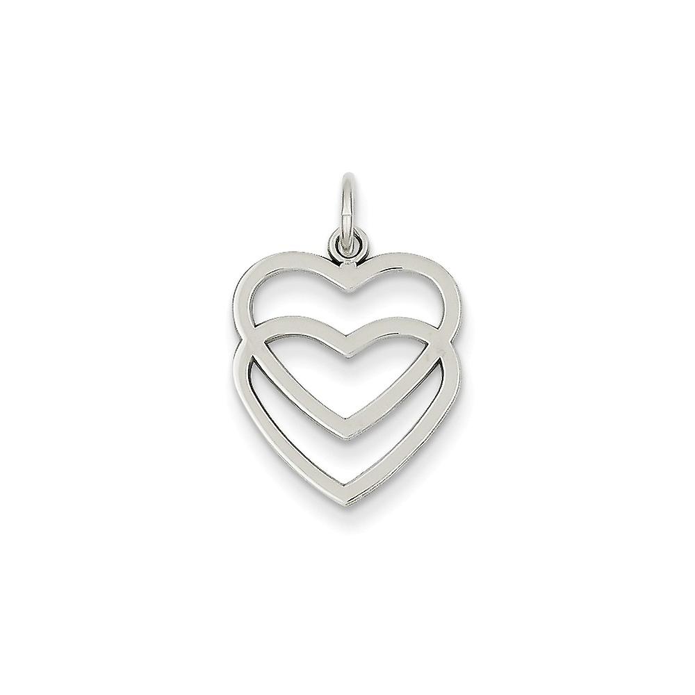 14k White Gold Polished Double Love Heart Charm 22x15mm Wide Pendant Necklace for Women - .8 Grams
