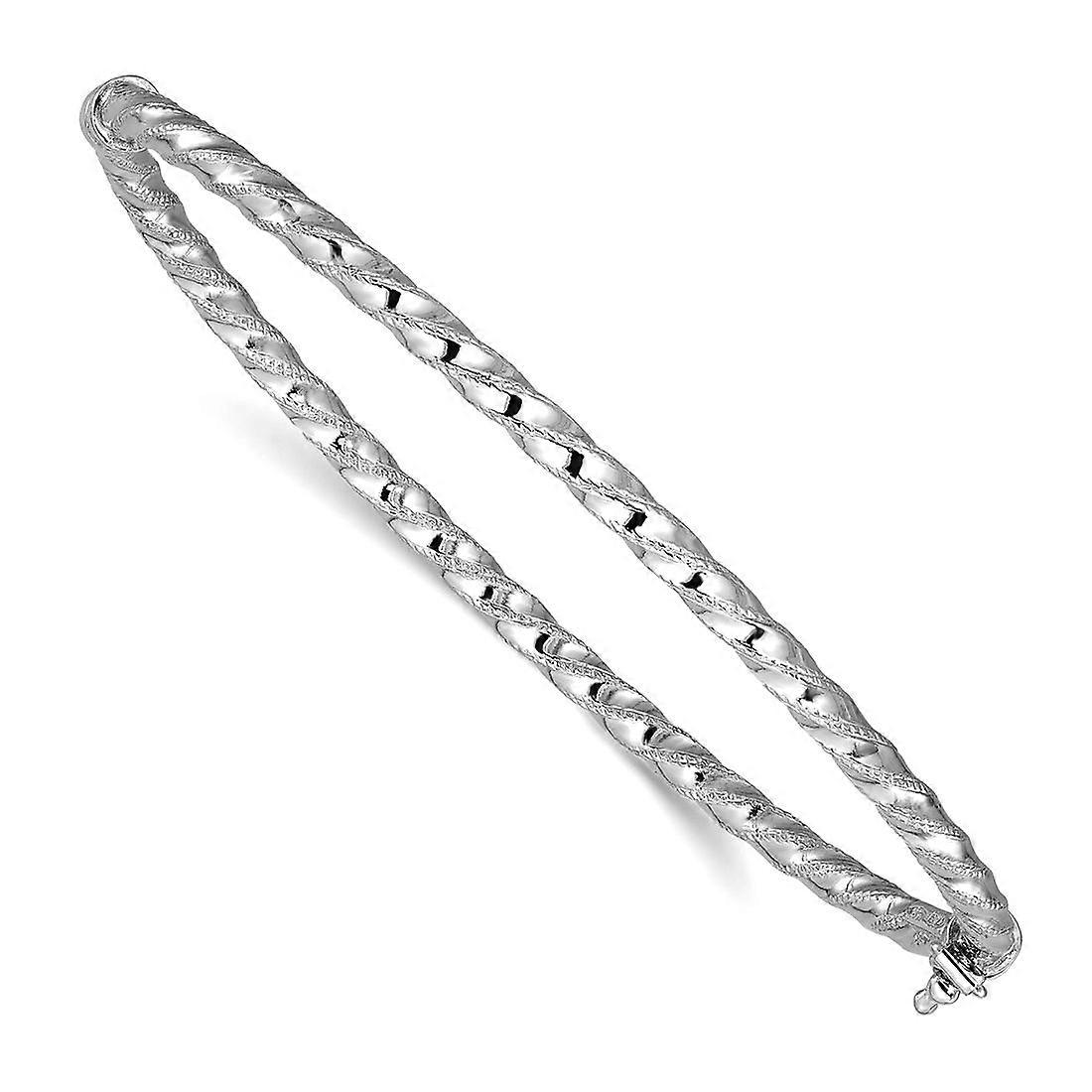 14k White Gold Polish Textured Twisted Hinged Bangle Bracelet Cuff-Bracelet for Women - 4.5 Grams