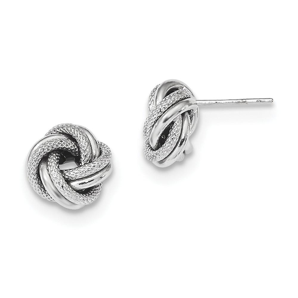 14k White Gold Polished Textured Double Love Knot Post Earrings 10x10mm Wide Stud Earring for Women