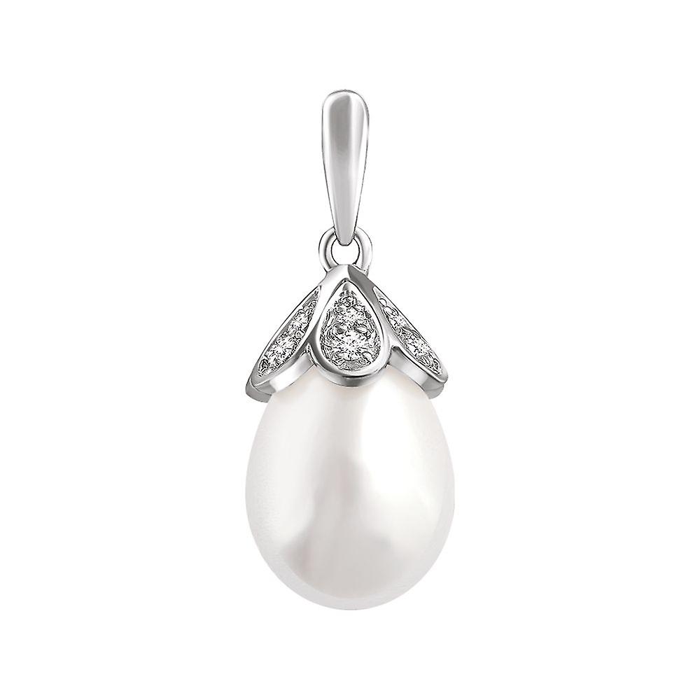 14k White Gold Polished White Freshwater Cultured Pearl and 0.13 Dwt Diamond Pendant Necklace-Pendant for Women