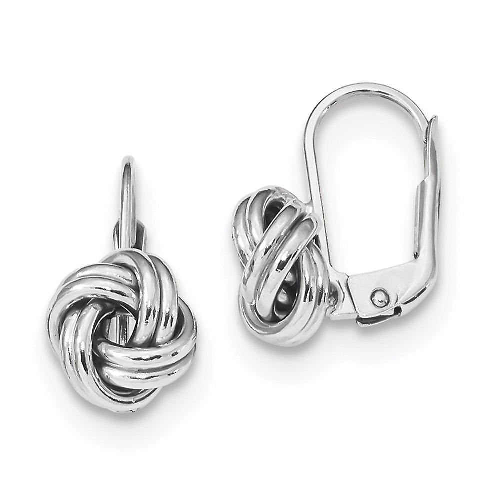 14k White Gold Polished Love Knot Leverback Earrings 17x9mm Wide Stud Earring for Women - 1.4 Grams
