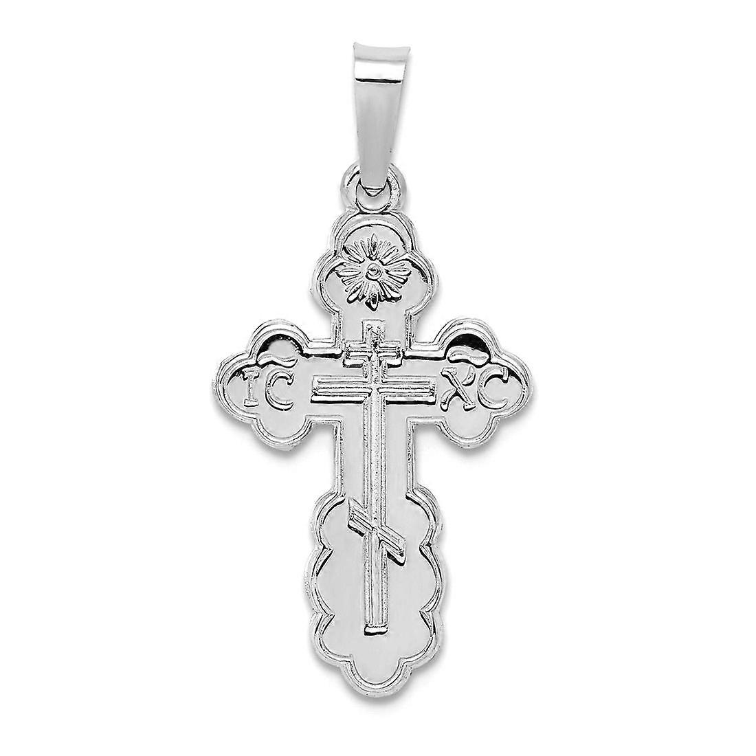 14k White Gold Polished Eastern Orthodox Solid Religious Faith Cross Pendant Necklace 25.9x12.85mm Wide 0.7mm Thick-Pend