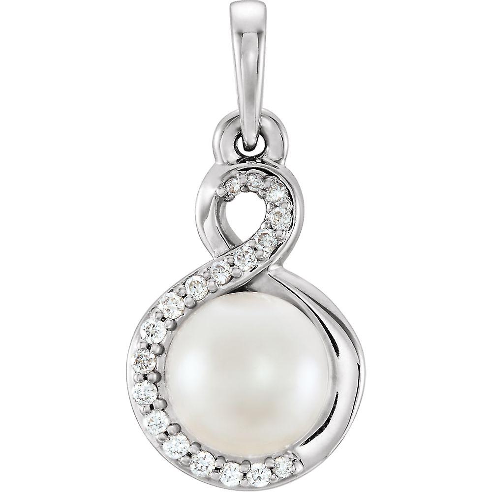 14k White Gold Polished Freshwater Cultured Pearl and .07 Dwt Diamond Pendant Necklace-Pendant for Women