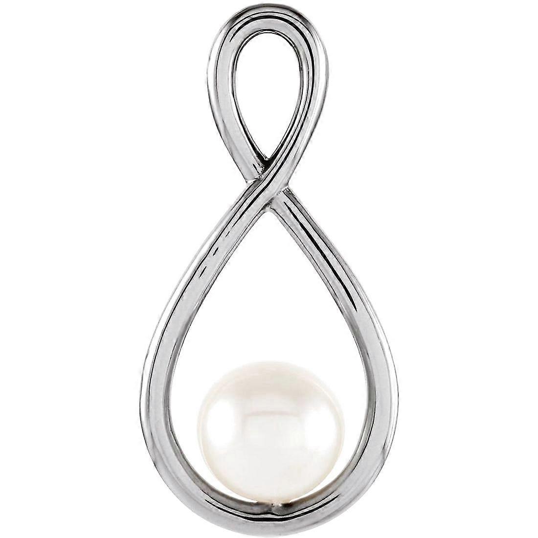 14k White Gold Polished Freshwater Cultured Pearl Pendant Necklace-Pendant for Women