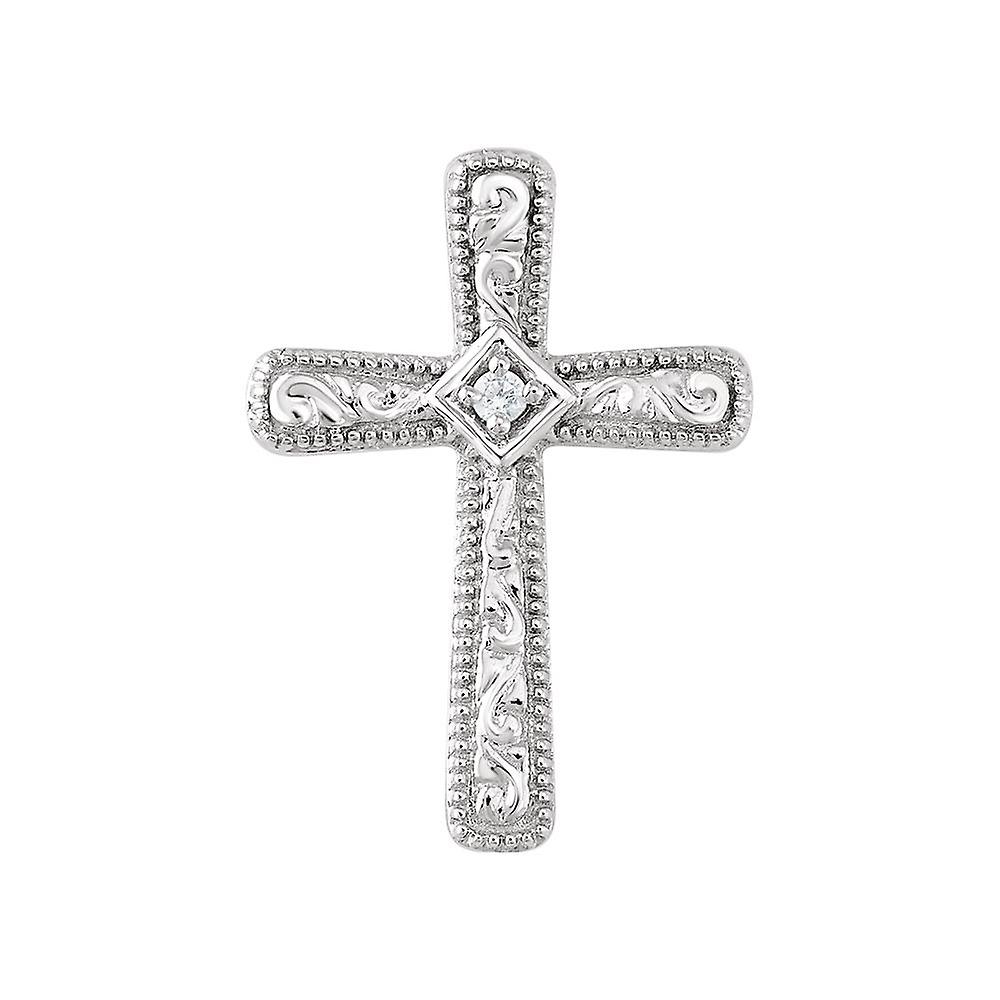 14k White Gold Polished .01 Dwt Diamond Religious Faith Cross Pendant Necklace-Pendant for Women