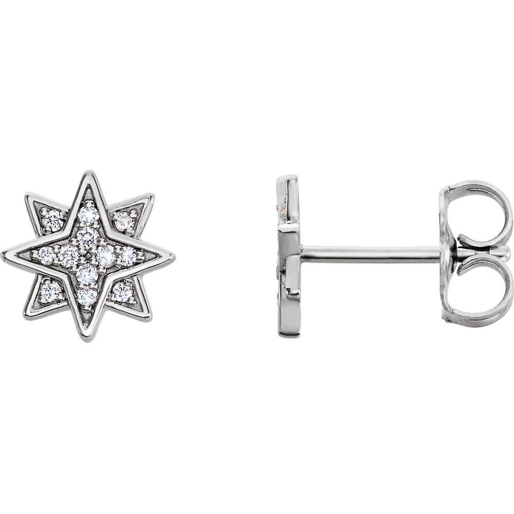 14k White Gold Polished .08 Dwt Diamond Star Earrings Stud Earring for Women