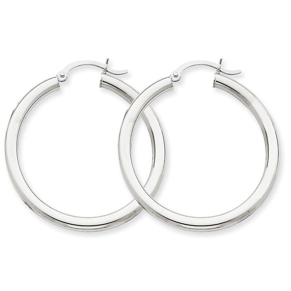 14k White Gold Polished 3mm Round Hoop Earrings 35mm long 3mm Thick-Hoop Earring for Women