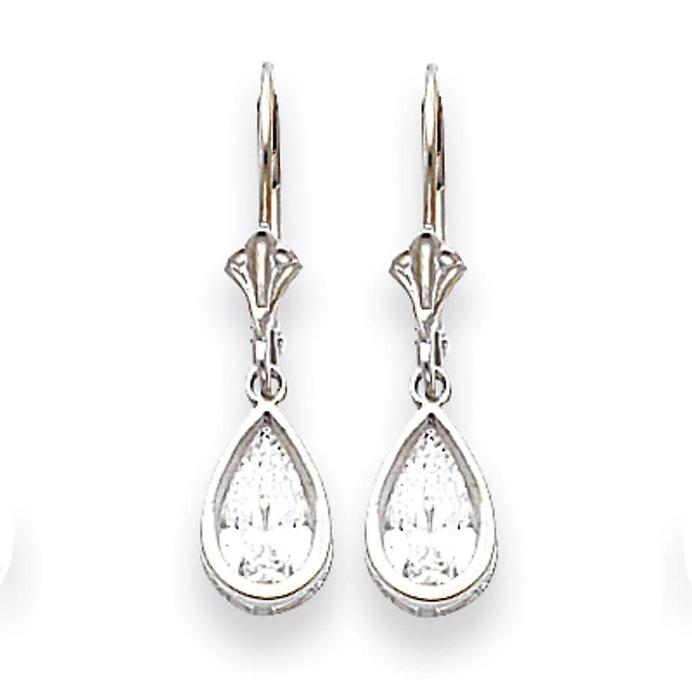 14k White Gold Polished 8x5mm Pear Cubic Zirconia Leverback Earrings 27x7mm Wide Stud Earring for Women