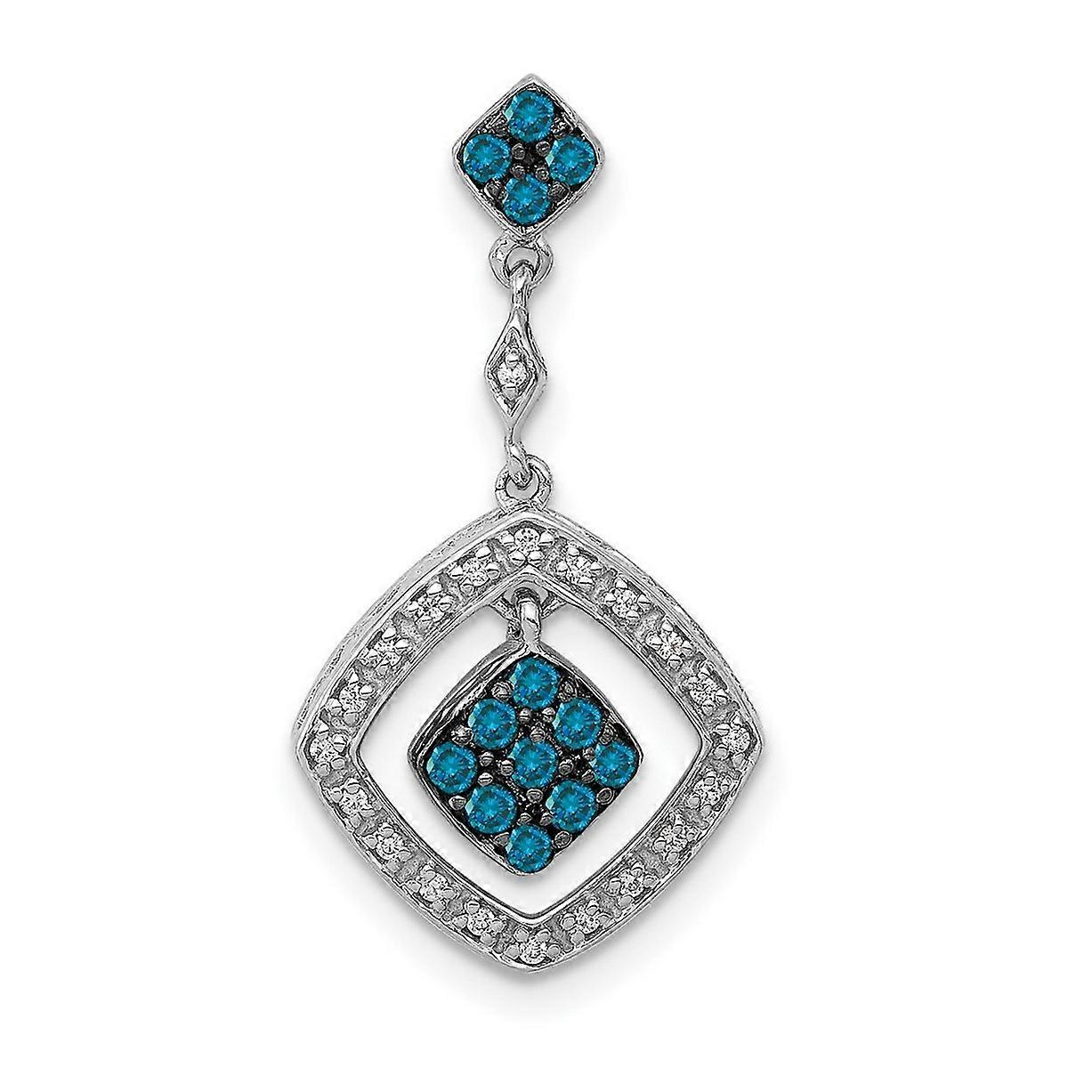 14k White Gold White and Blue Diamond Dangle Pendant Necklace-Pendant for Women - .25 dwt