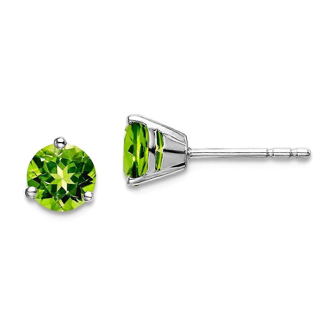 14k White Gold Round Peridot Earrings 5.4x5.4mm Wide Stud Earring for Women - .9 Grams .86 cwt