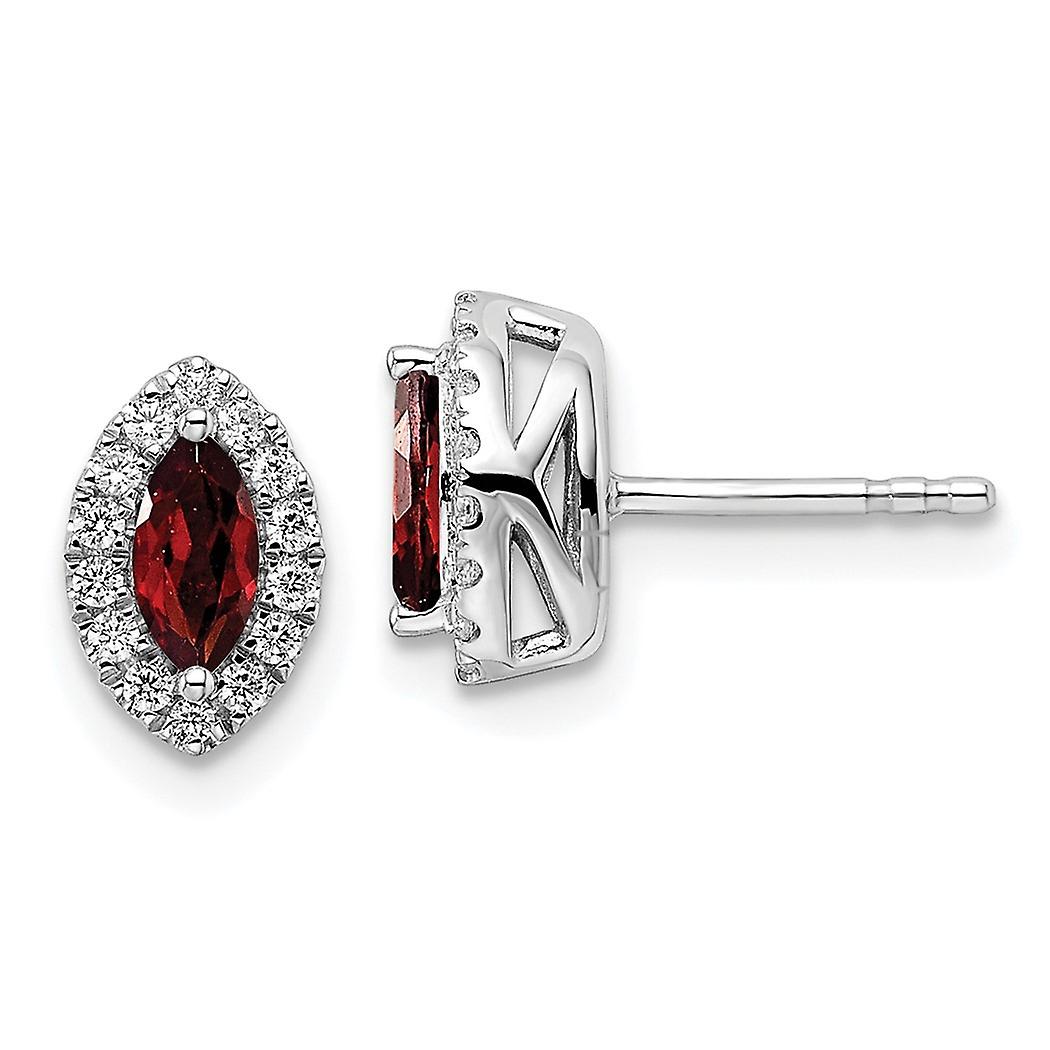 14k White Gold Lab Grown Diamond and Garnet Post Earrings 9.3mm Long Stud Earring for Women