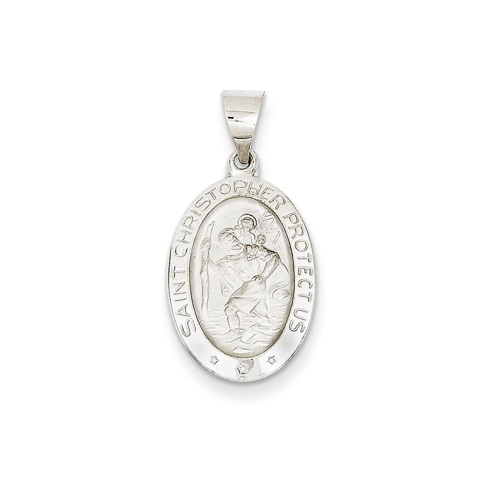 14k White Gold Hollow Polished and Satin St. Christopher Medal Pendant Necklace 28.25x15mm Wide-Pendant for Women