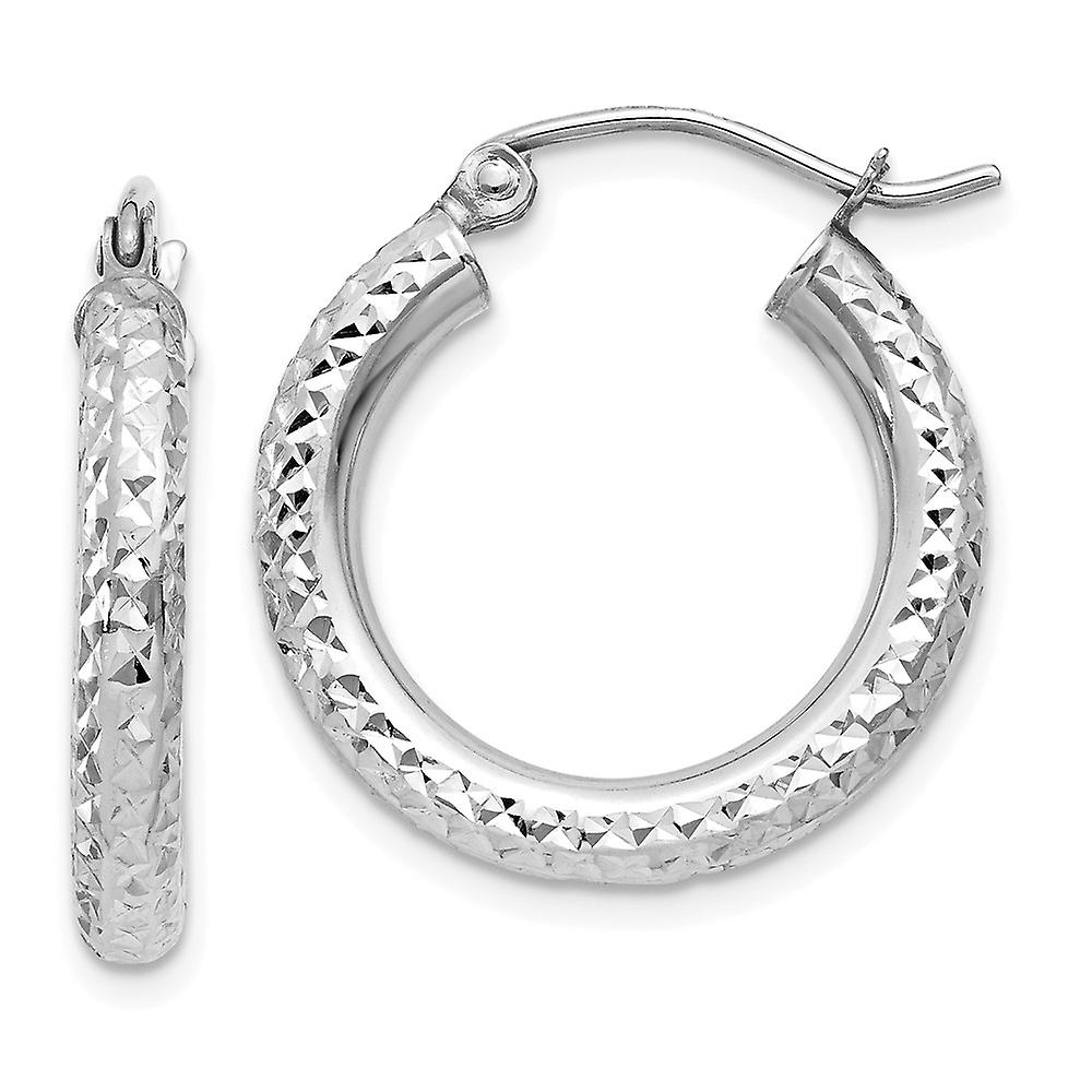 14k White Gold Hollow Polished Sparkle Cut 3mm Round Hoop Earrings 20x20mm-Hoop Earring for Women