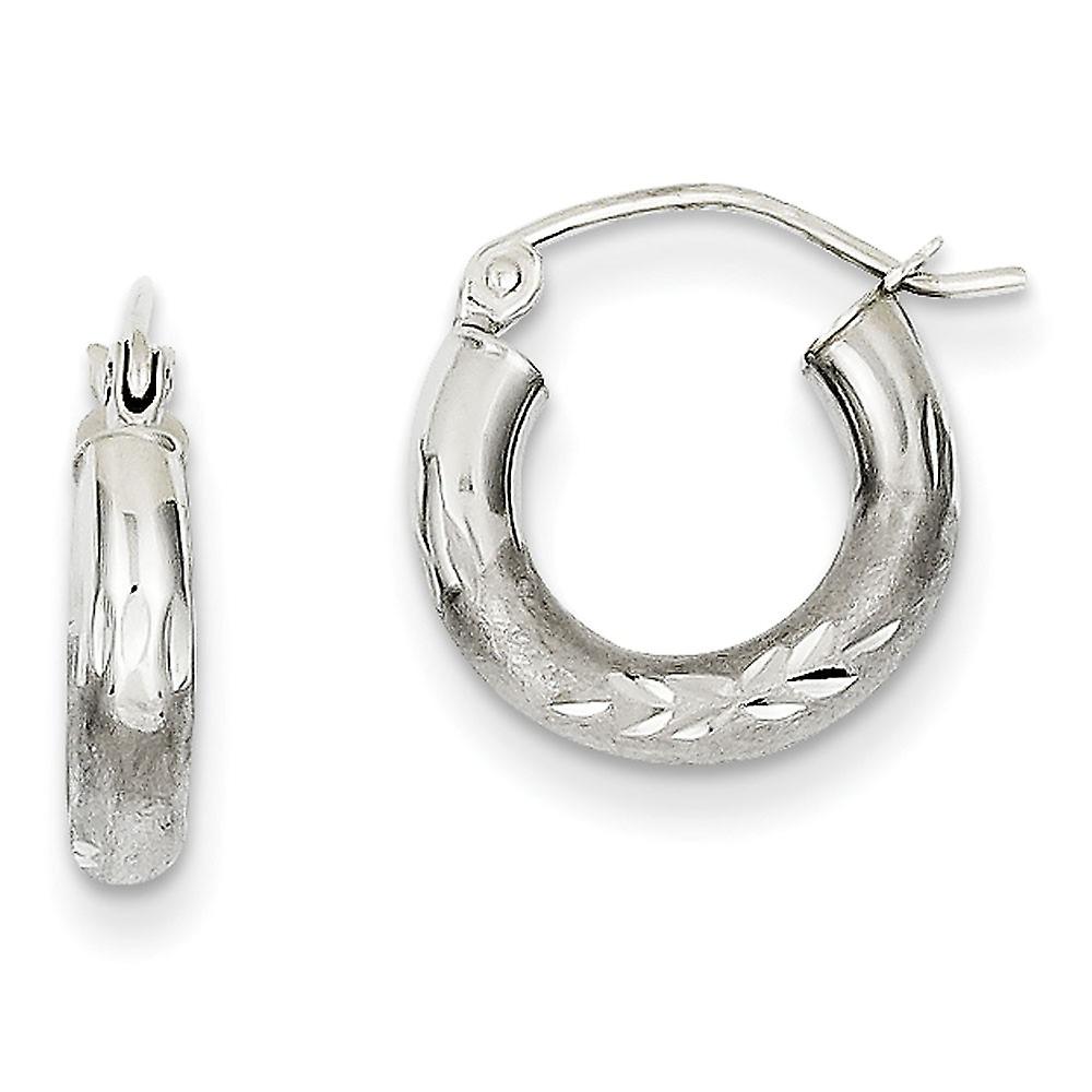14k White Gold Hollow Polished Hinged post Satin and Sparkle Cut 3mm Round Hoop Earrings 10x2.5mm Wide-Hoop Earring for