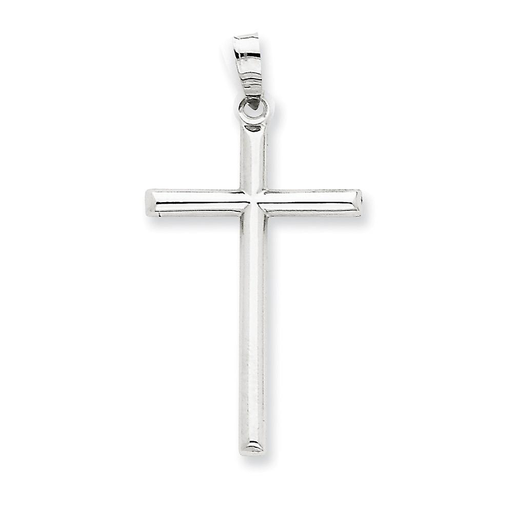 14k White Gold Cross Pendant - Measures 38.3x19.7mm - .9 Grams in 14k White Gold - Product Attributes: - 3-D - Hollow - Polished - - Width of Item: 20 mm - Length of Item: 38 mm - Bail Length: 6.1 mm - Bail Width: 3.35 mm - - This Item Does Not Ship With a Chain