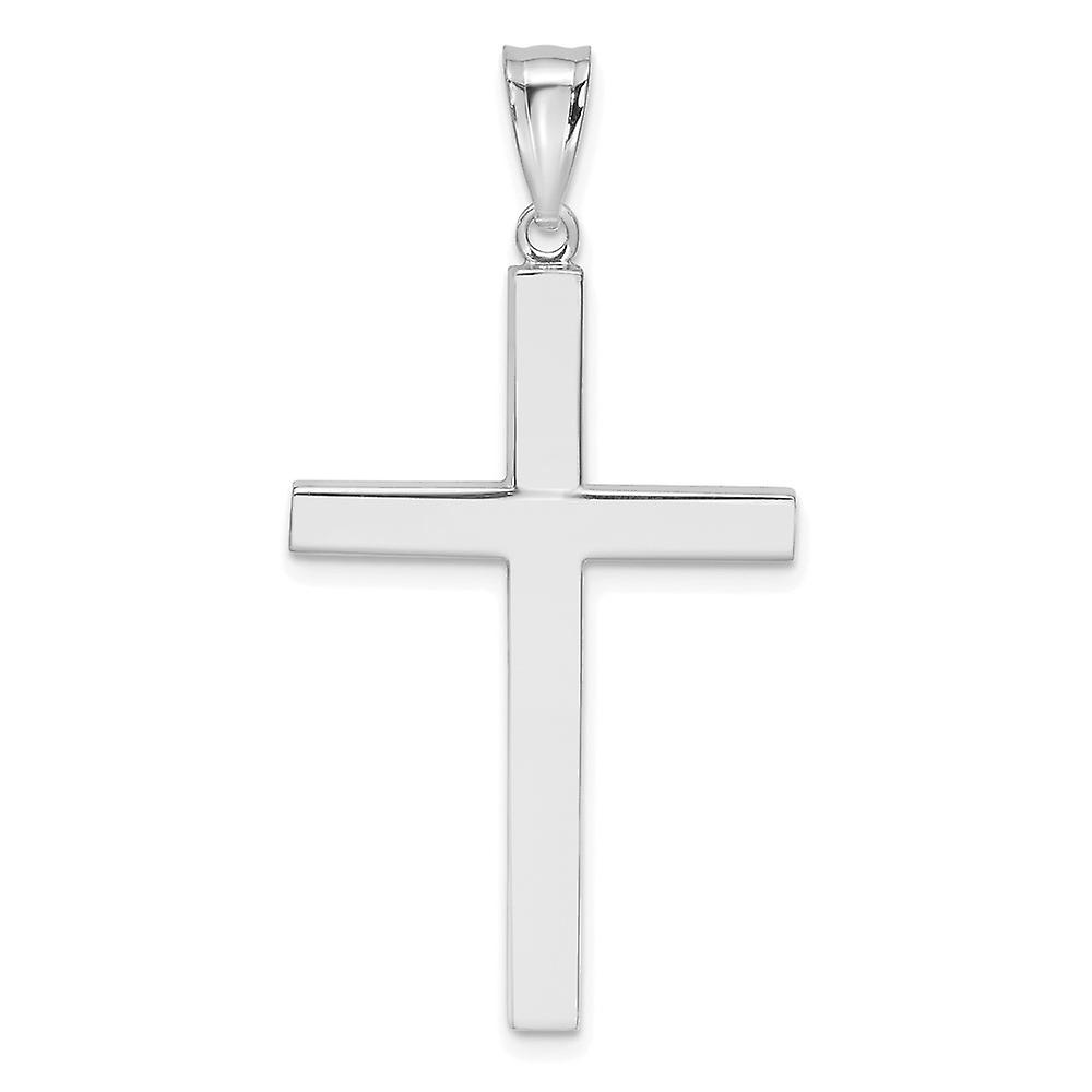 14k White Gold Hollow Latin Religious Faith Cross Pendant Necklace 40x21mm Wide-Pendant for Women