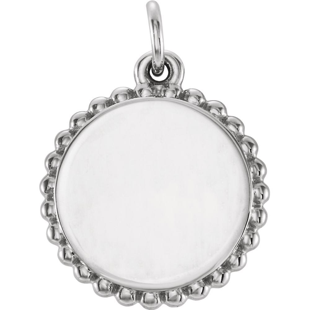 14k White Gold No Engraving Polished Engravable Round Beaded Pendant Necklace-Pendant for Women