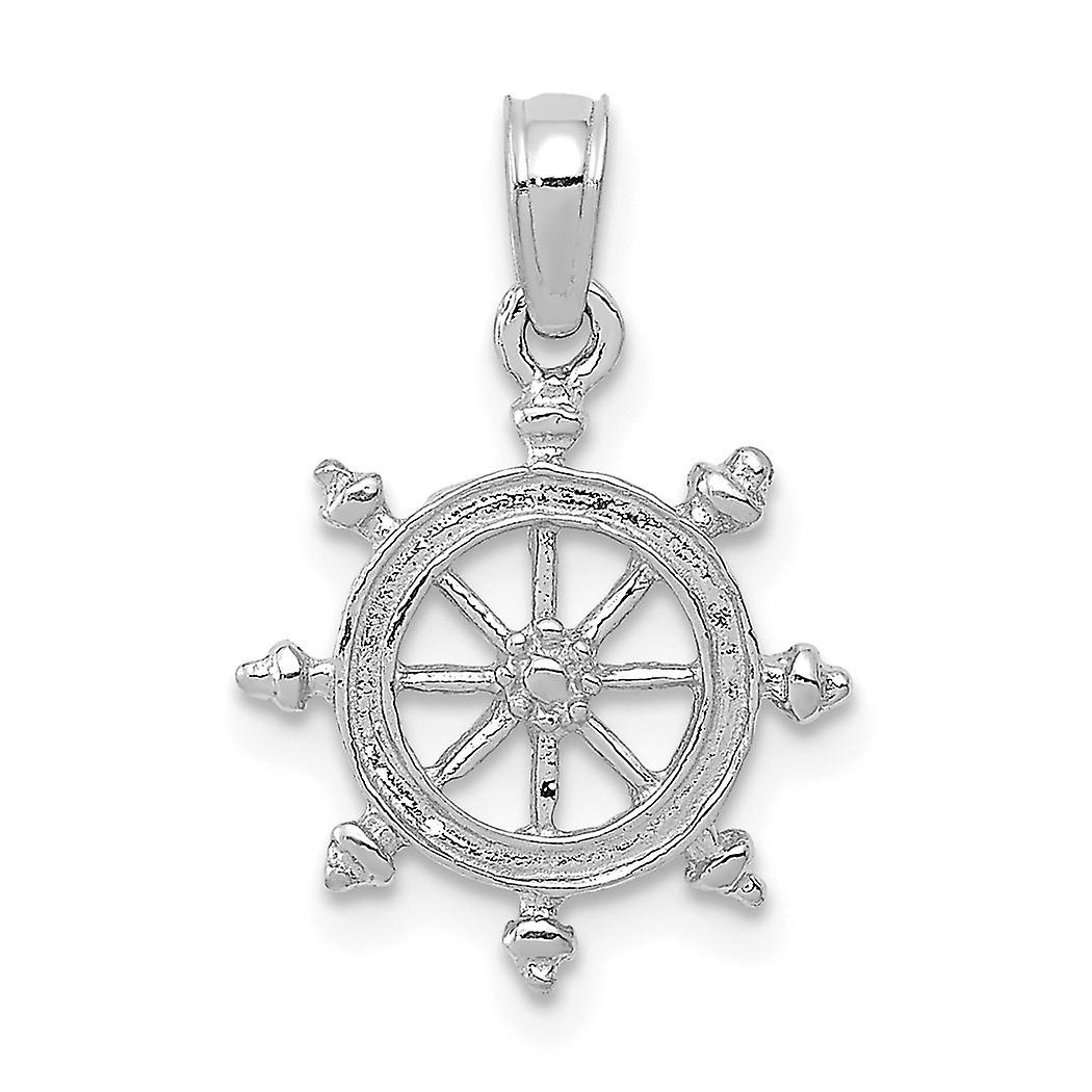 14k White Gold Ship Wheel Pendant Necklace 19mm long-Pendant for Women - .6 Grams