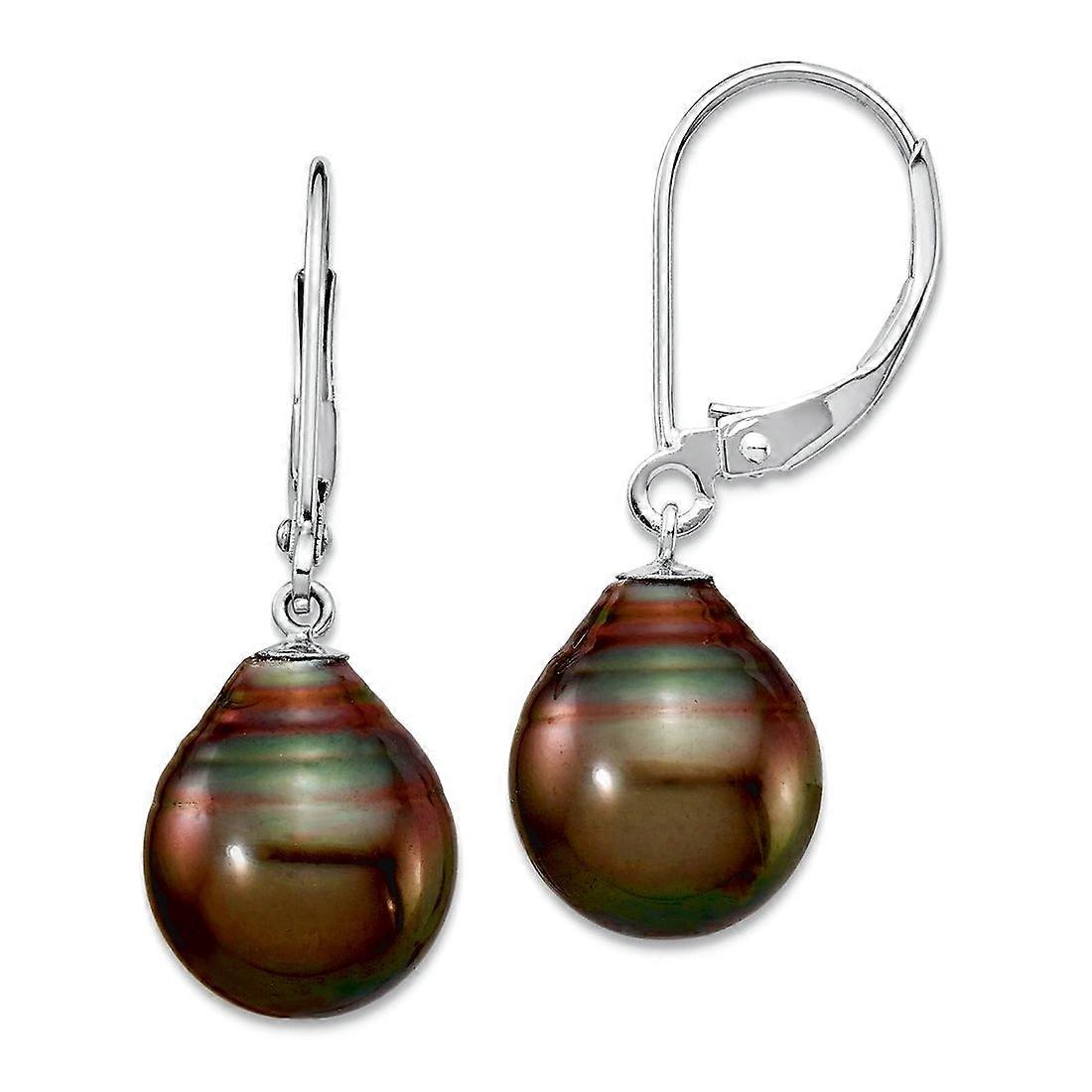 14k White Gold 10 11mm Teardrop Saltwater Cultured Tahitian Leverback Earrings 29.6mm long Stud Earring for Women