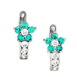 14k White Gold December Blue Cubic Zirconia Flower Leverback Earrings 13x7mm Stud Earring for Women