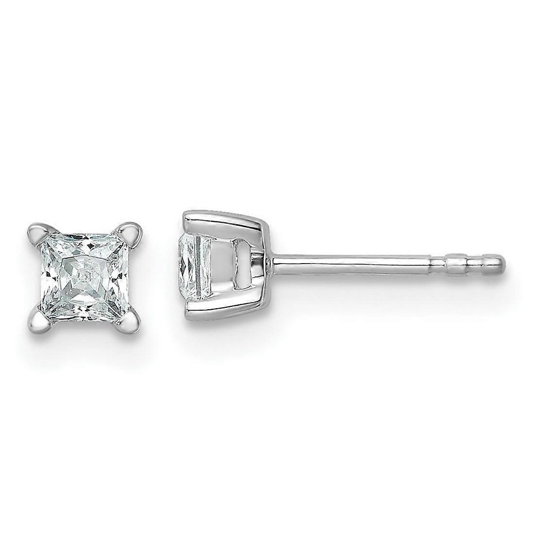 14k White Gold 1/2 Ctw Lab Grown Diamond SI+ G+ Princess 4 Prong Heavy Weight Earrings 4.55x4.55mm Wide Stud Earring for