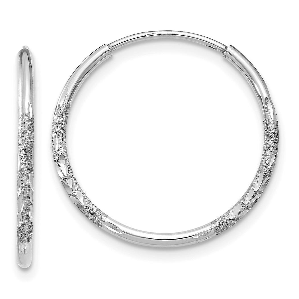 14k White Gold 1.25mm Sparkle Cut Endless Hoop Earrings 17x17mm Wide 1.25mm Thick-Hoop Earring for Women