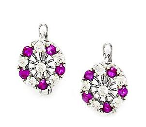 14k White Gold July Red Cubic Zirconia Flower Leverback Earrings 13x9mm Stud Earring for Women