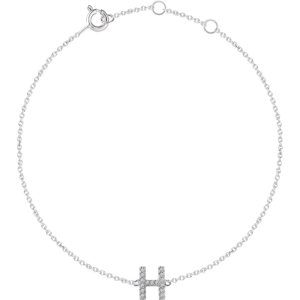 14k White Gold H Polished .06 Dwt Diamond 6 7 Inch Letter Name Personalized Monogram Initial Bracelet Link-Bracelet for