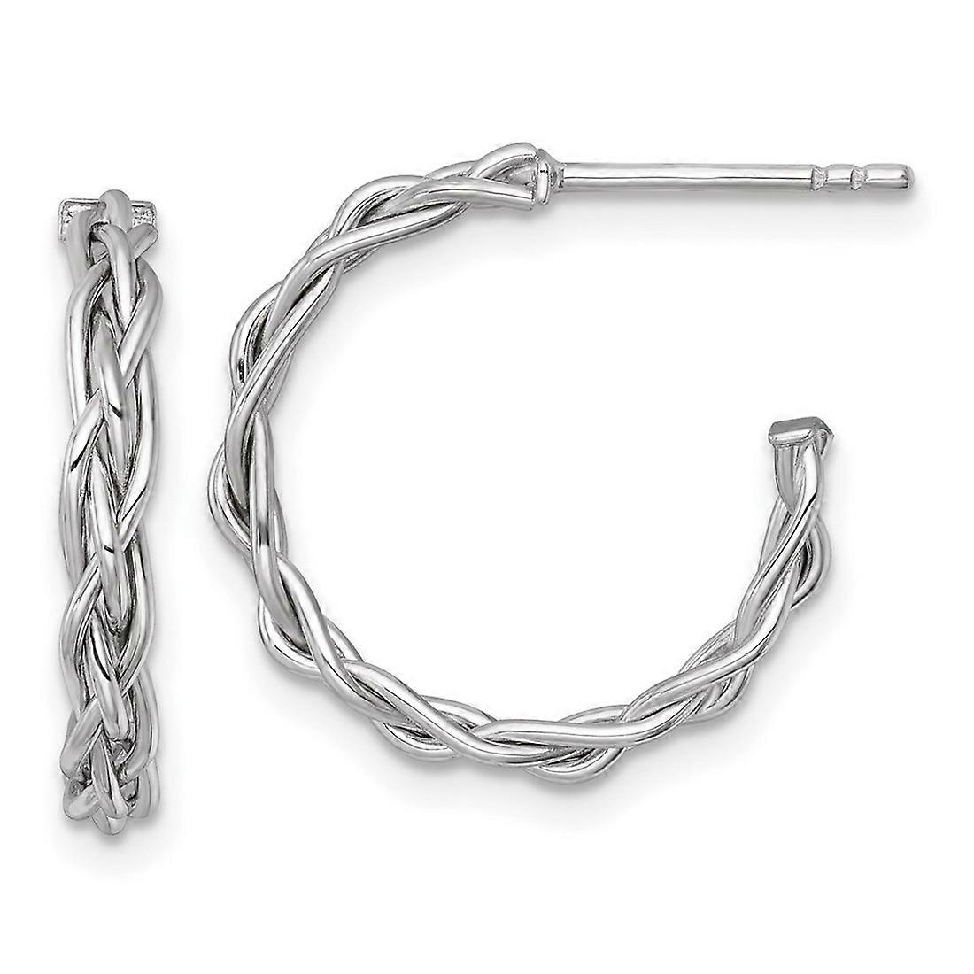 14k White Rhodium Plated Polished Woven 3mm Post Hoop Earrings 19.45x19mm Wide 3mm Thick-Hoop Earring for Women