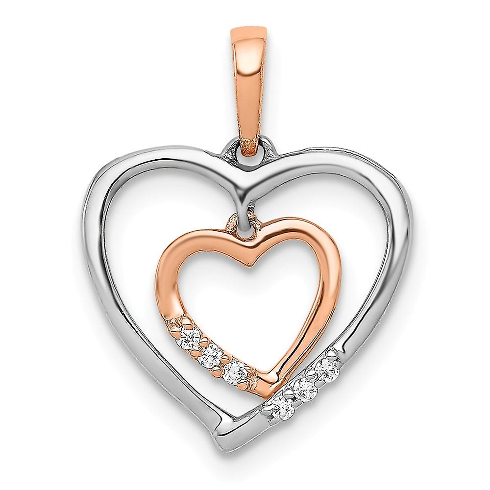 14kt White With Rose Gold Love Heart Charm Diamond-Heart Pendant Necklace-Pendant for Women