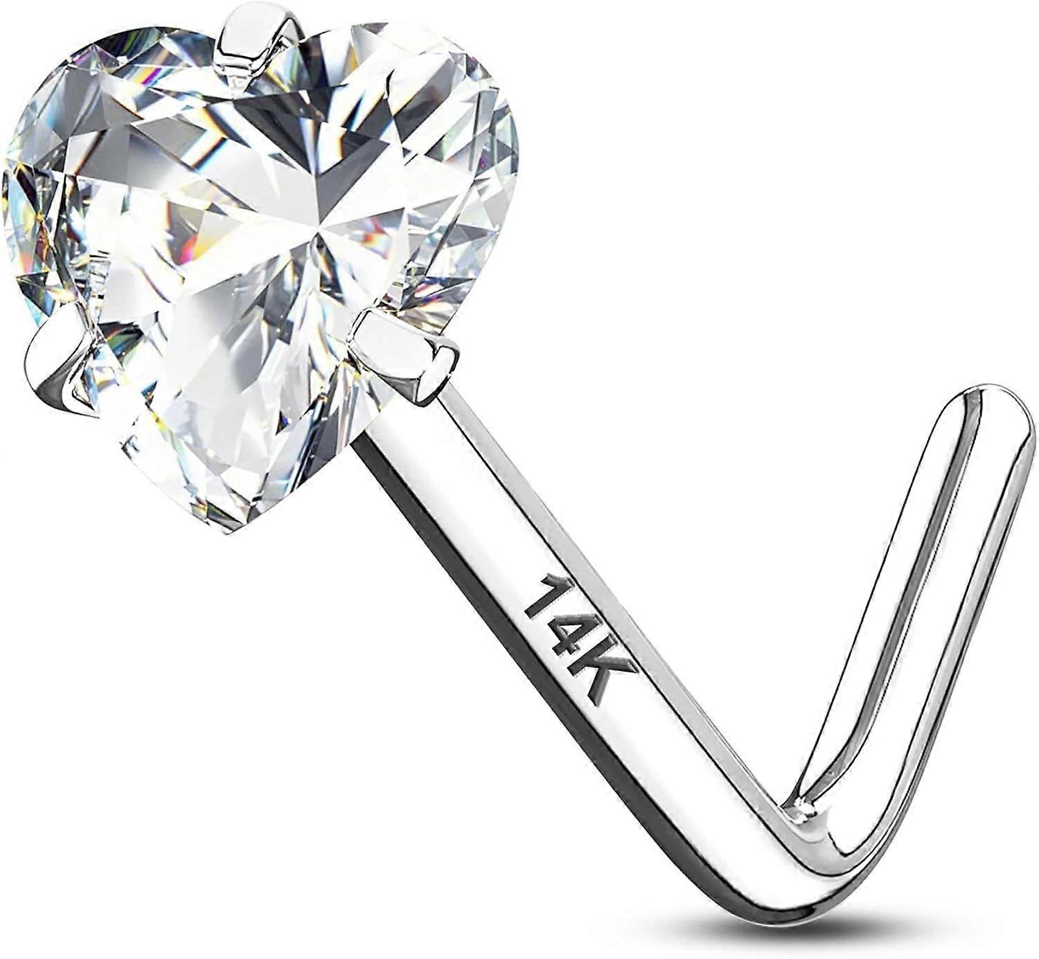 14K Real Gold Nose Studs 20G Nose Rings Studs L Shaped Nose Rings for Women Men