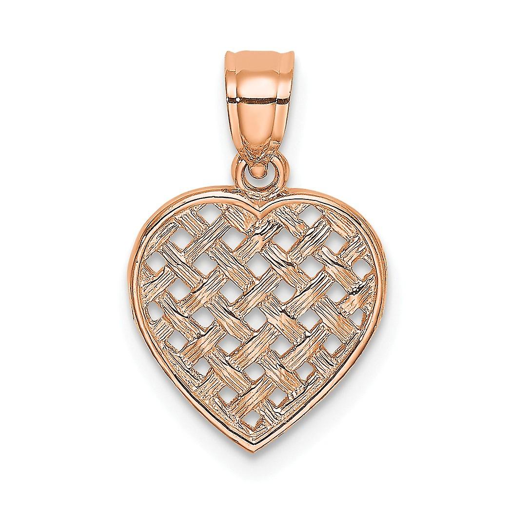 14k Rose Gold Woven Love Heart Pendant Necklace Cut out and Textured 16x11.4mm Wide-Pendant for Women