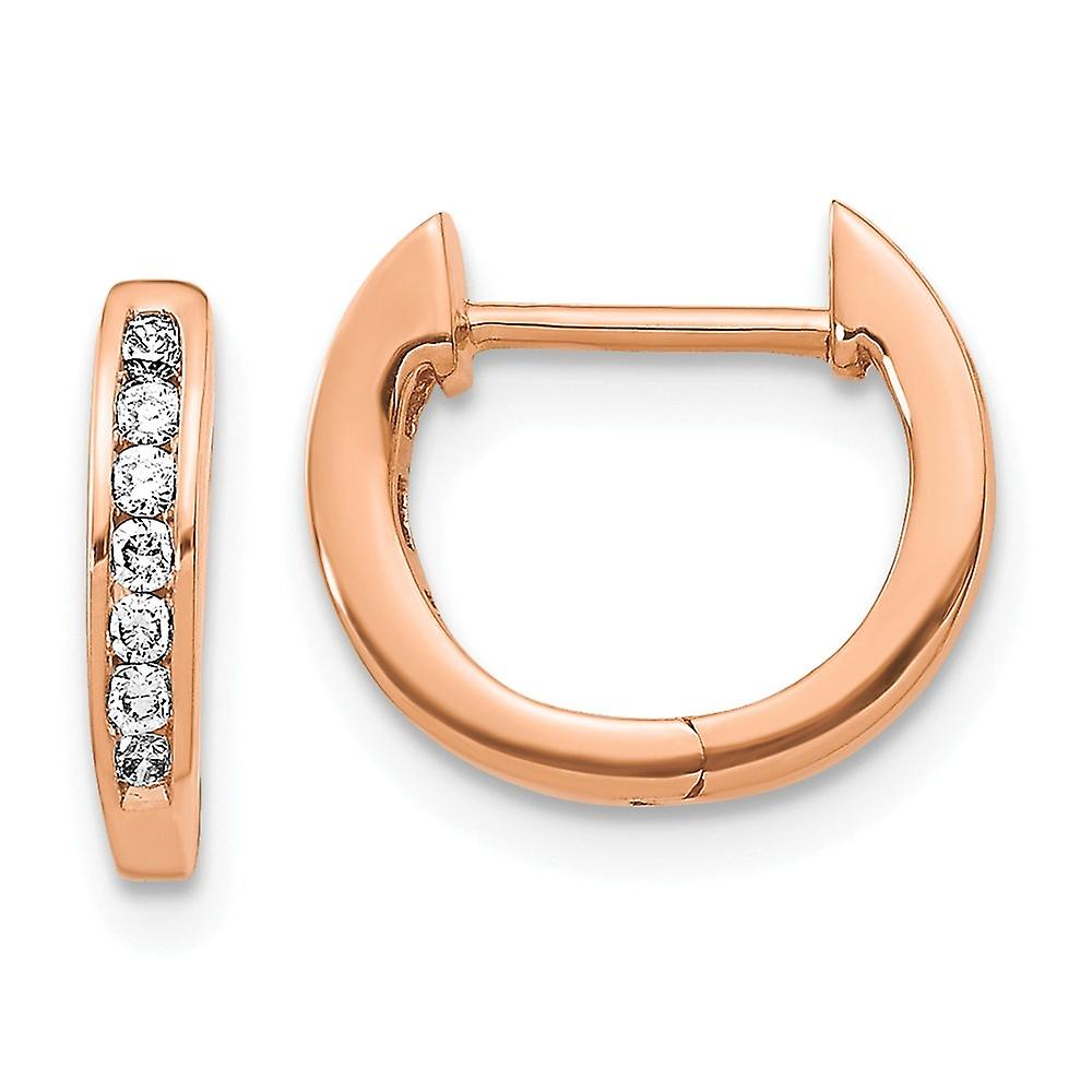 14k Rose Gold Polished Diamond Hinged Hoop Earrings 11x12mm Wide 1mm Thick-Hoop Earring for Women