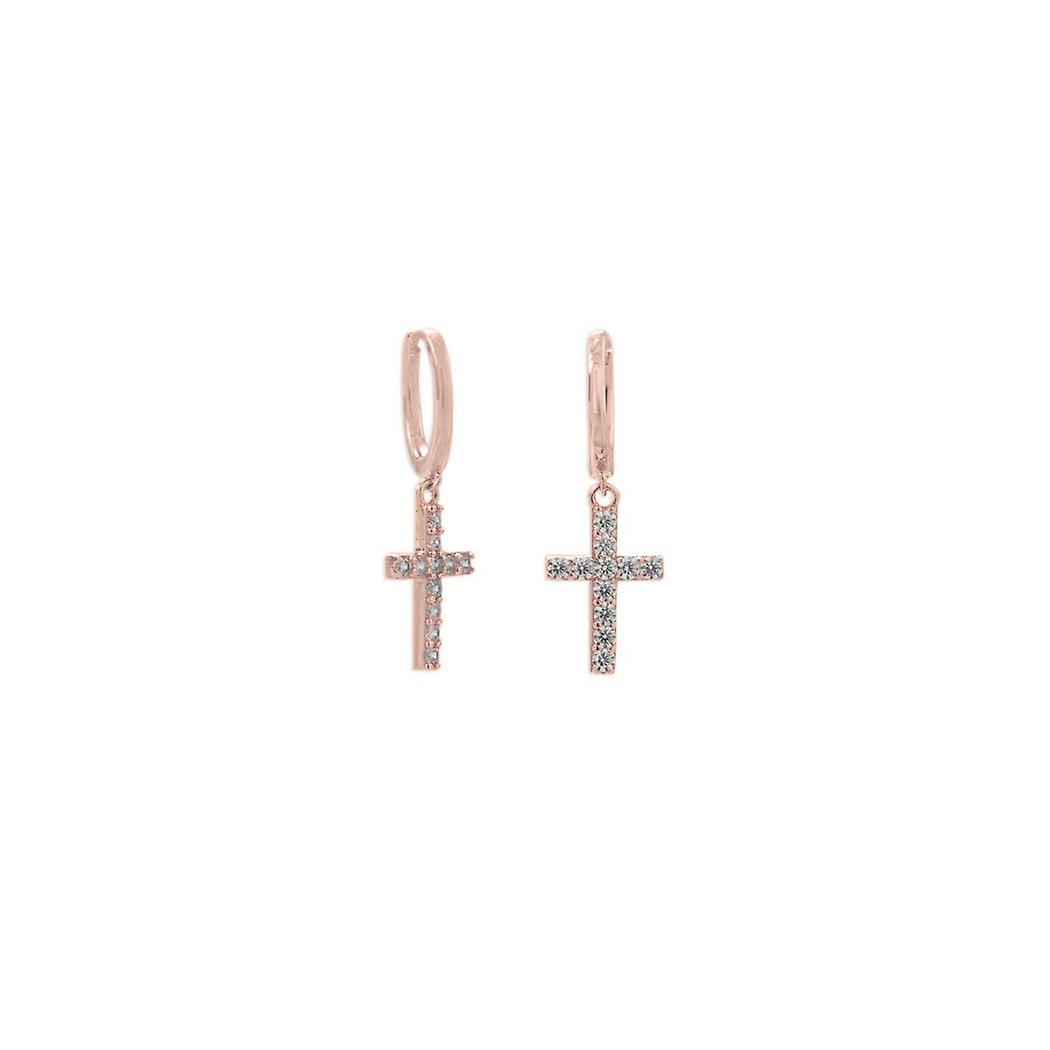 14k Rose Gld Plated 925 Sterling Silver Hoop Earrings With CZ Religious Faith Cross 2mm CZs CZ Drops Hoops 11.4mm in Di-