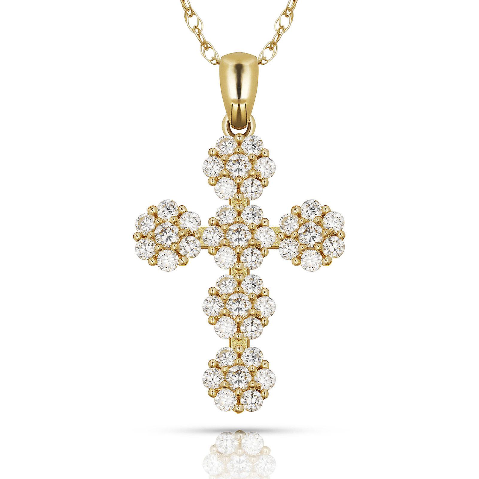14k Yellow Gold Cubic Zirconia Religious Faith Cross Pendant Necklace 28x15mm-Pendant for Women