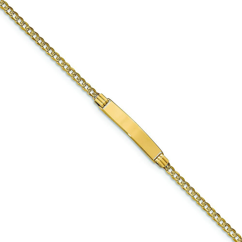 14k Yellow Gold Polished 6 Inch Pave Curb Link ID Bracelet Lobster Claw 5mm Wide Identification-Bracelet