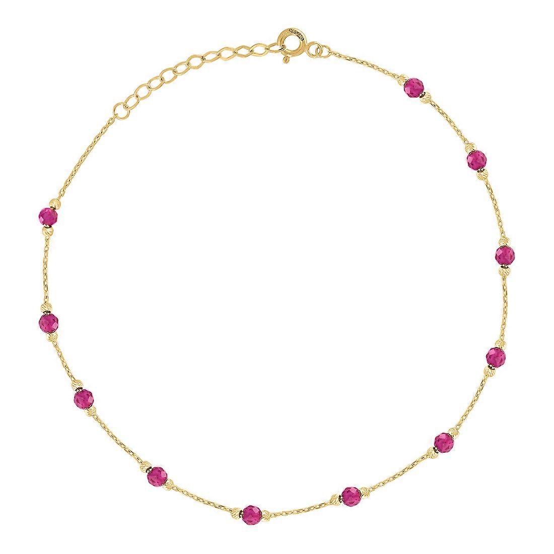 14k Yellow Gold Womens Pink Cubic Zirconia Chain Anklet 10 Inch 3mm Long-Anklet for Women and Men