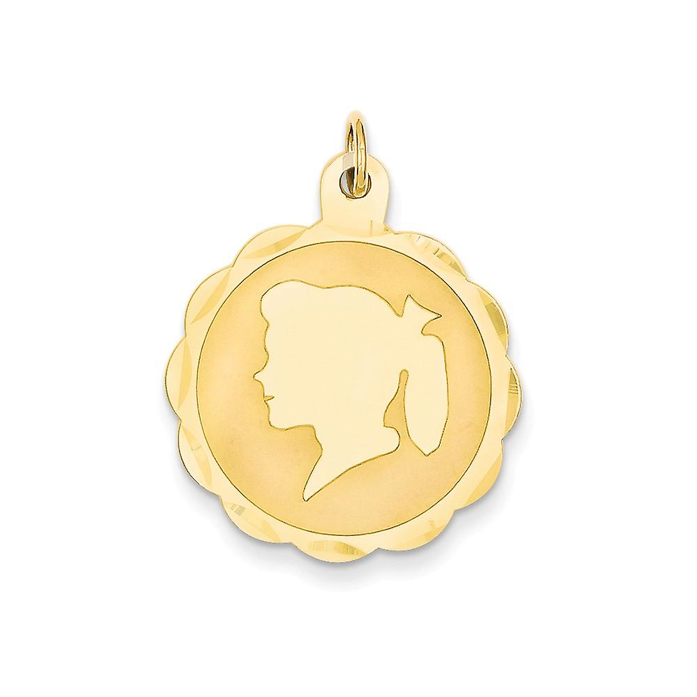 14k Yellow Gold Solid Polished Head on .013 Gauge Engraveable Scalloped Disc Charm 29x22mm Wide Pendant Necklace for Wom