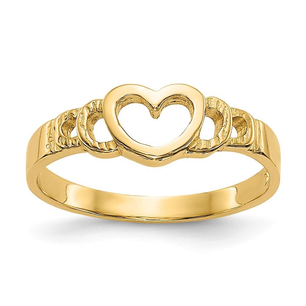 14k Yellow Gold Polished Love Heart Ring Size 2.25 Statement-Ring for Women - 1.0 Grams