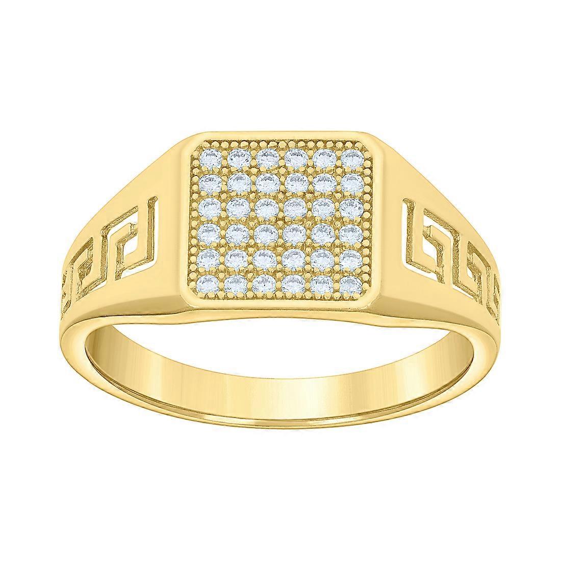14k Yellow Gold Mens Cubic Zirconia Square Head Fashion Ring 9.9x3.6mm Wide-Ring for Men - 3.2 Grams