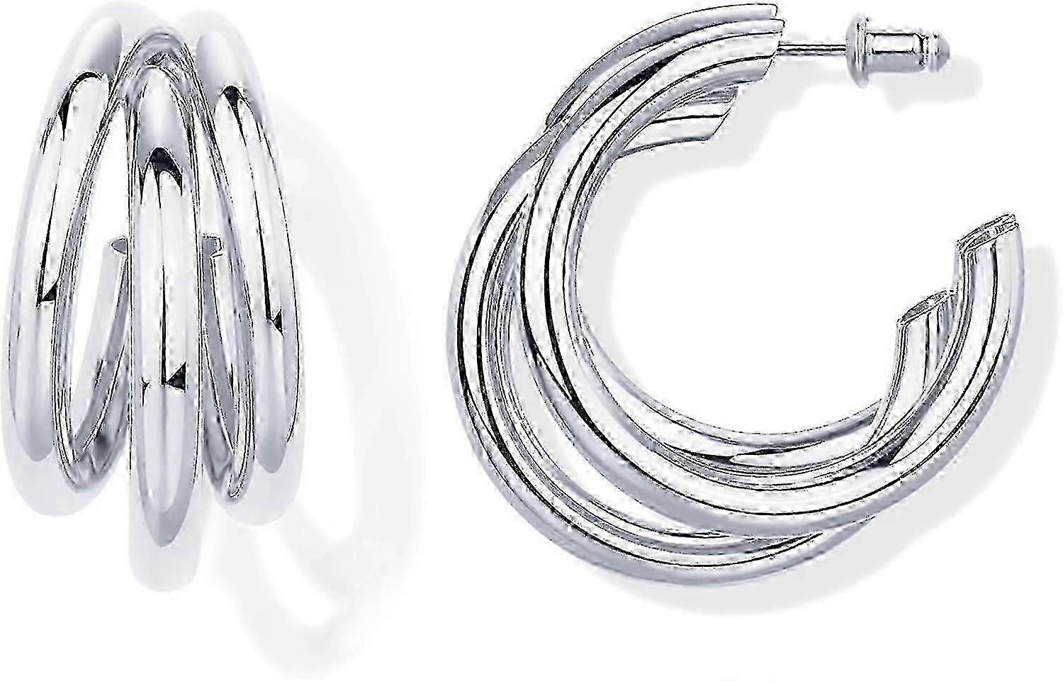 14K Gold Plated Chunky Multi Hoop Earrings for Women | Hypoallergenic Trendy Triple Split Loop Huggie Earrings