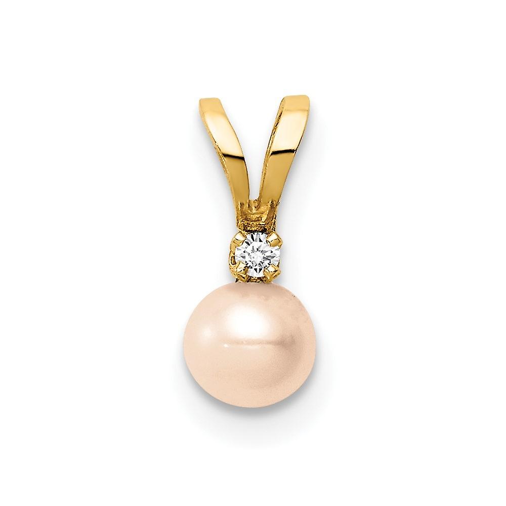 14k Gold 4 5mm Pink Near Round Freshwater Cultured Pearl Cubic Zirconia Pendant Necklace-Pendant for Women
