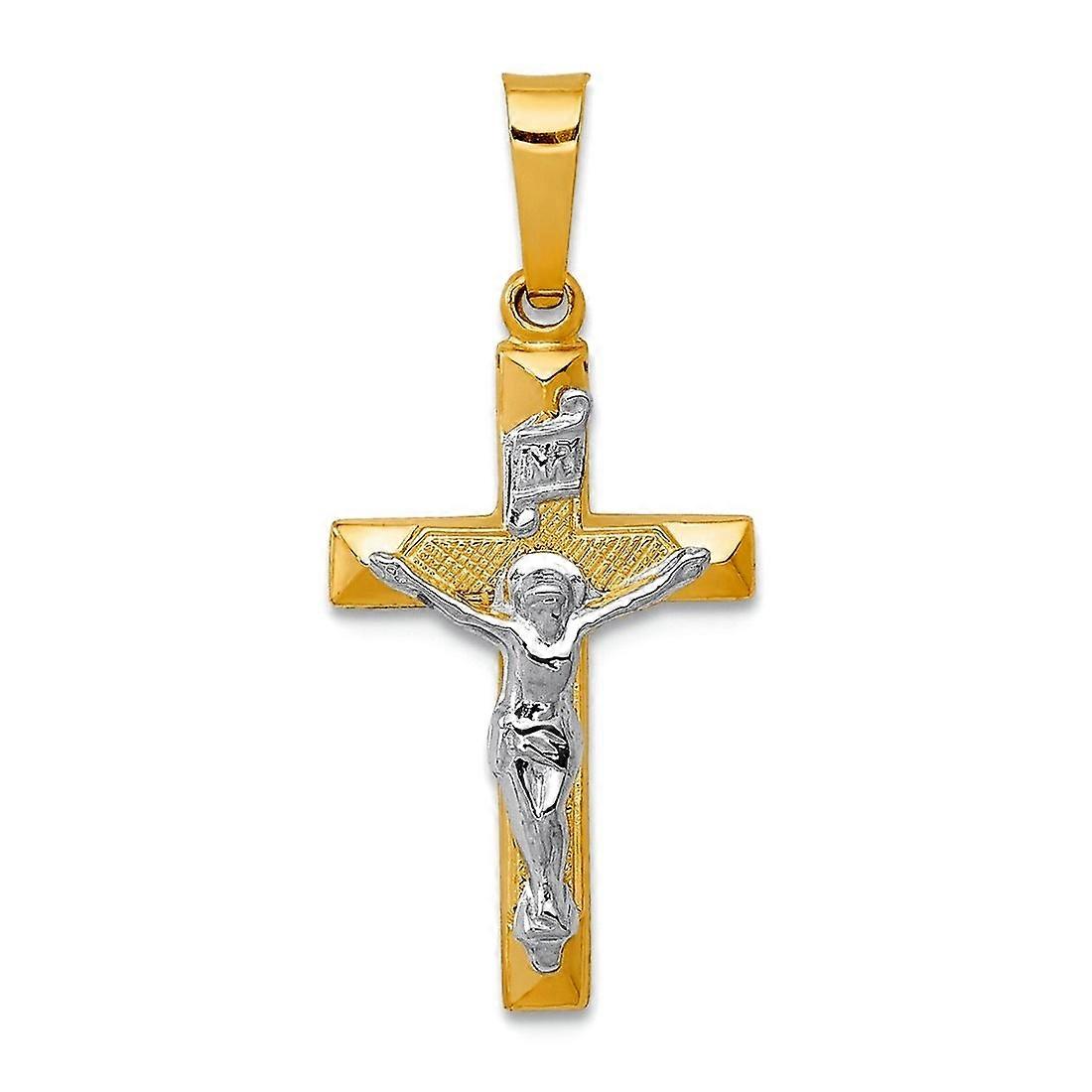 14k Two Tone Polished Gold INRI Hollow Crucifix Pendant Necklace 11.3x25.3mm-Pendant for Women