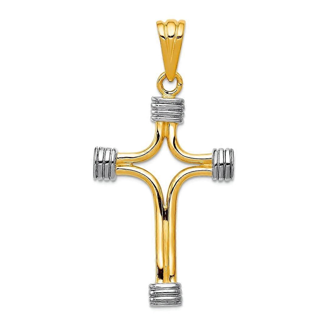14k Two Tone Solid Polished Gold Fancy Religious Faith Cross Pendant Necklace 23.1x45.8mm-Pendant for Women