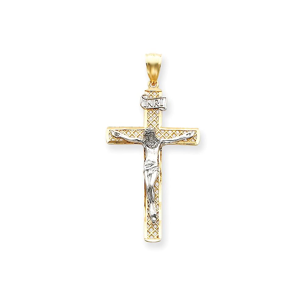 14k Two Tone Solid Polished Not engraveable Gold Filigree Crucifix Pendant Necklace 26x51.8mm-Pendant for Women