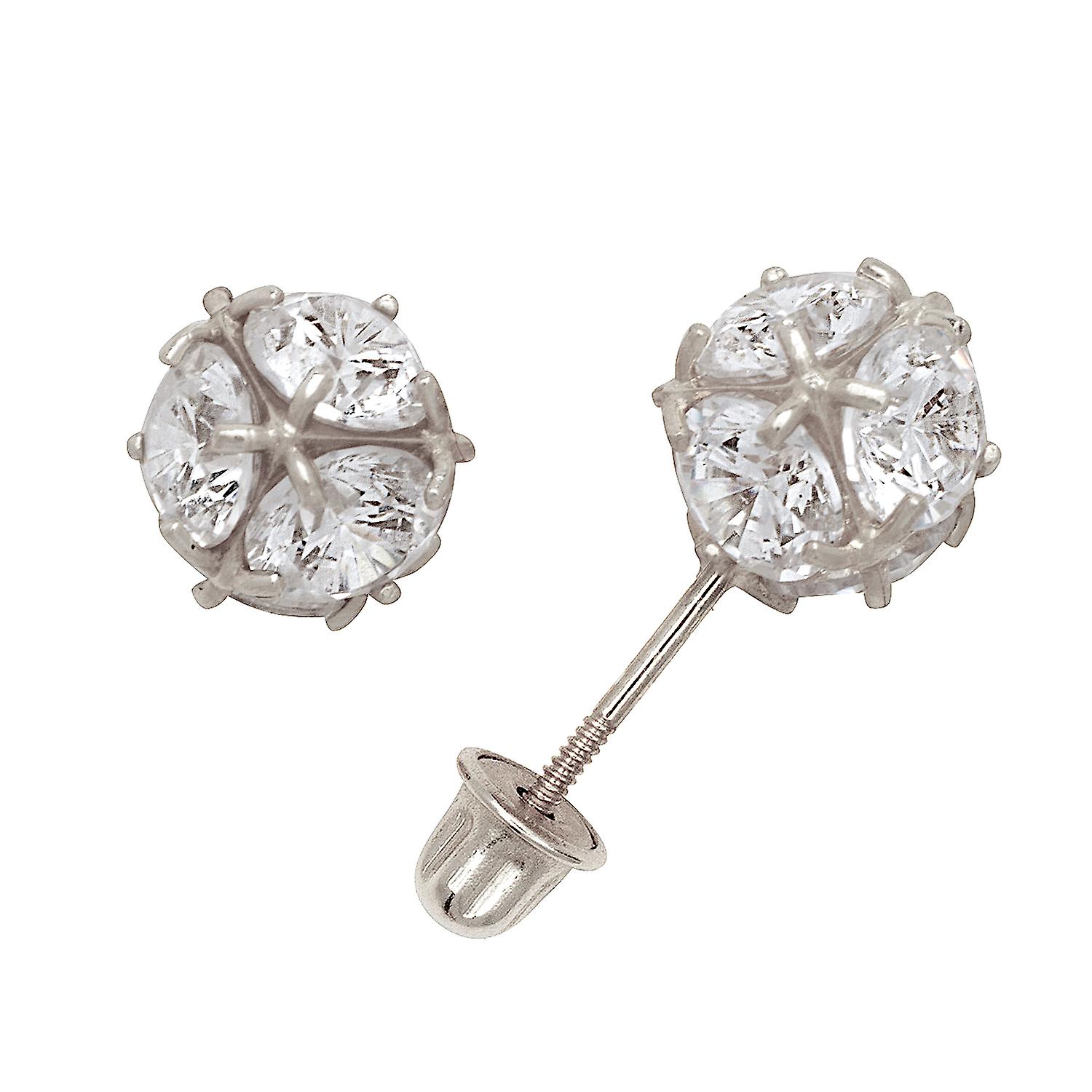 14k White Gold Cubic Zirconia Medium Disco Ball Screw Back Earrings 7x7mm-Ball Earring for Women