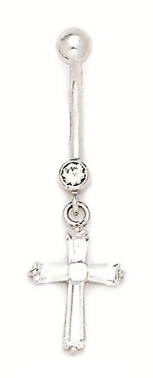 14k White Gold Cubic Zirconia 14 Gauge Religious Faith Cross Body Jewelry Belly Ring 38x12mm-Body Piercing-Ring for Wome